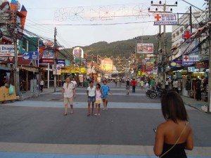 Setelah berjemur dan menikmati pemandangan, saya berjalan menyusuri pantai menuju Bangla Road yang tersohor itu. Di sepanjang jalan ini banyak terdapat bar-bar dan diskotik dengan satu dua toko souvenir terselip disana sini. Kalau di Bali mirip daerah Kuta Legian lah.