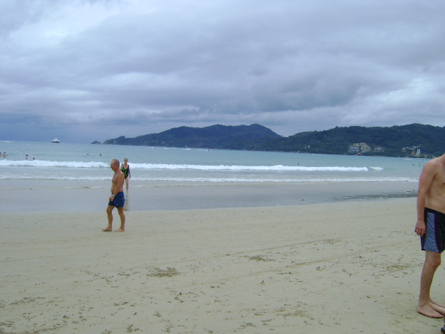 Pantai Patong terletak di sebelah barat kota dan merupakan salah satu destinasi wisata paling terkenal di Phuket. Pantai ini terkenal dengan kehidupan malamnya yang terpusat di dua area, Bangla Road, untuk turis campuran dan Paradise Complex yang banyak didominasi oleh gay. Pantainya sendiri menurut saya tidak terlalu istimewa, ombaknya tenang dan pemandangan sekitarnya cukup indah. Untuk penghematan, bentangkan saja sarung pantai sebagai alas duduk atau berjemur. Satu hal yang mengherankan, tidak ada penduduk lokal yang berekreasi di pantai ini. Hanya kami (saya dan suami) yang berwajah Asia, pengunjung lainnya full bule (bandingkan dengan pantai-pantai di Bali).