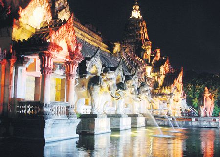 Ketika pertunjukkan akan dimulai semua pengunjung berbondong-bondong masuk ke gedung pertunjukkan yang didesain seperti istana. Semua diharuskan menitipkan kamera, handphone dan alat perekam lain. Bisa dibayangkan ribuan penonton antri untuk menitipkan barangnya. Pertunjukkan ini memang spektakuler. Dari atraksi pemain, desain kostum dan panggung, tata lampu memang sangat indah dan megah. Tari-tariannya sendiri walaupun indah tapi emosinya tidak sekuat bila kita menonton pertunjukkan tari Barong di Bali yang tata panggungnya notabene sangat sederhana. Duh, coba tari Barong dikemas seperti ini pasti hasilnya akan jauh lebih spektakuler. Yang sangat mengherankan mereka bisa mengorganisasi berbagai jenis binatang untuk tampil di panggung, dari binatang besar seperti gajah sampai binatang kecil seperti ayam dan burung dara (baru disini saya lihat ayam dan bebek naik pentas).