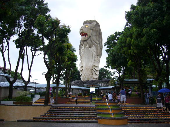 Begitu turun dari monorail di Imbiah Station, kita akan disambut dengan patung singa karya pemahat Australia setinggi 37 meter yang merupakan kembaran dari patung singa di Merlion Park dekat Singapore River. Untuk masuk ke dalam patung singa ini kita mesti bayar lagi, tapi gratis kalau mau foto-foto di depannya. Saya sih cari yang gratis aja. Menurut informasi, didalam patung singa ini kita akan diajak menelusuri sejarah Merlion dan kita dapat naik ke mulut dan kepalanya untuk melihat pemandangan Sentosa dan Singapura dari ketinggian.  Setelah puas berfoto di taman depan The Merlion, kami makan malam di 7 Eleven dekat area itu.