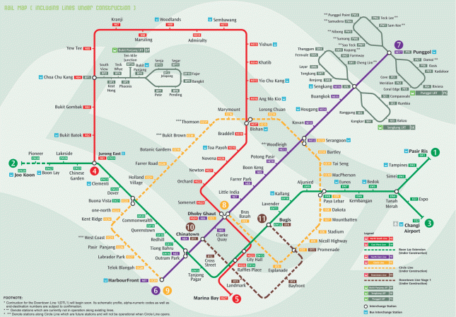 Bagi yang pertama kali naik MRT jangan bingung karena jalur tertulis jelas diluar dan didalam MRT. Sebelum naik, pastikan kita berada di platform yang benar dengan memperhatikan peta jalur MRT yang selalu ada di tiap stasiun. Sebagai contoh : hotel kami terletak di daerah Novena. Dari peta di bawah, kita ketahui kalau Novena berada dalam jalur merah. Jadi dari Changi Airport (jalur hijau) kita naik MRT sampai Tanah Merah. Dari Tanah Merah kita ambil jalur kearah Joo Koon, karena Novena berada di jalur merah kita turun di stasiun City Hall yang merupakan stasiun interchange ke jalur merah. Di stasiun interchange seperti City Hall, Dhoby Gaut dimana jalur-jalur kereta ungu, biru, hijau saling bersilangan, sekali lagi jangan bingung. Ikuti terus petunjuk arahnya dijamin tidak kesasar. Kalau masih bingung, Tanya saja sama orang-orang di sekitar (pakai bahasa upin-ipin juga boleh) mereka akan senang sekali membantu.