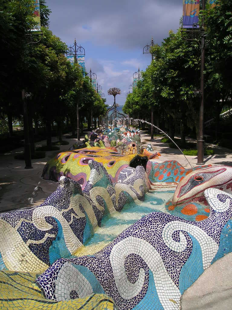 Sehabis makan, kami berjalan kaki menelusuri Merlion Walk kembali ke Beach Station untuk melihat pertunjukkan Song Of The Sea. Merlion Walk yang merupakan ‘ekor’ dari The Merlion panjangnya sekitar 120 meter berupa taman yang menjadi bagian dari patung Singa itu sendiri. Informasi tentang The Merlion dapat di klik disini http://www.sentosa.com.sg/en/attractions/imbiah-lookout/the-merlion.