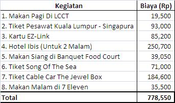 Perhitungan Biaya Hari Ke 2 (Per 1 Orang Dewasa)