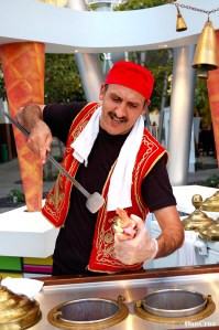 Sambil menunggu kedatangan kapal, kami membeli es krim Turki yang dijual di Food Stall pinggir jalan. Rasanya biasa saja dan tidak terlalu istimewa. Tapi setidak-tidaknya kami tahu rasa es krim Turki (he he he)..