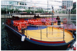 Setelah kapal datang, kami berbondong-bondong naik dan mulai duduk sambil mendengarkan guide yang berceloteh tentang sejarah Clarke Quay. Cukup menarik dan tidak membosankan. Banyak sekali hal-hal kecil yang kita tahu dengan mendengar penjelasannya. Kapal ini berlayar menyusuri Clarke Quay, Boat Quay dan Robertson Quay. Sudah beberapa kali saya mengunjungi Singapore River tapi baru kali ini berkesempatan menyusurinya dengan naik kapal. Ternyata pemandangannya jauh lebih indah bila dari atas kapal. Waktu ideal untuk naik cruise ini adalah sore dan malam hari dimana lampu-lampu gedung di sekitar Singapore River mulai dinyalakan. Walaupun hanya 30 menit tapi cukup berkesan.
