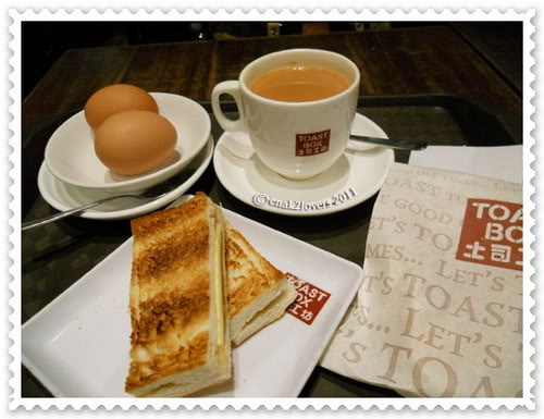 Traditional Kaya Toast sendiri terdiri dari 2 telur rebus setengah matang, 1 tangkap roti dengan selai kacang yang tebal (2.5 cm menurut standart) dan secangkir teh tarik yang bisa diganti dengan kopi Nanyang (meniru sarapan orang Inggris tahun 1960-an katanya !). Mulanya saya agak kecewa, kok isinya cuman selai kacang doang, tapi begitu digigit..hmmmm rasanya memang selangit…(pantes kalau restoran ini terkenal banget).