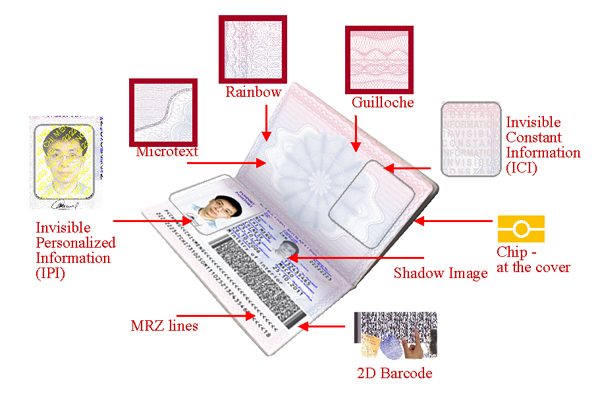 Untuk menghindari pemalsuan, setiap negara memiliki bentuk chip dan data biometrik yang berbeda. Data biometriknya ada yang menggunakan bentuk wajah, sidik jari bahkan iris mata. Hal ini menjelaskan mengapa di beberapa bandara terkemuka terdapat alat scan mata, scan sidik jari dan kamera yang biasanya nangkring di loket-loket petugas imigrasi bandara. Di dalam paspor biometrik ini ditanam antenna, processor, chip dan RFID Label yang dilaminating dibawah identitas pemegang. Indonesia sendiri sudah mulai mengeluarkan e-paspor sejak Januari 2011 walaupun baru mewajibkan penggunaannya mulai tahun 2015. Harga e-paspor berkisar antara Rp. 400.000 – Rp. 650.000 berlaku untuk 5 tahun dengan bentuk wajah dan sidik jari sebagai data biometriknya. Sebelumnya sejak tahun 2006, Indonesia sudah menerbitkan paspor biometrik (tapi bukan e-paspor). Tapi, alih-alih menggunakan chip, paspor biometrik Indonesia menggunakan system bar code sebagai penggantinya. Padahal yang model chip saja masih bisa tembus apalagi yang pakai bar code (kasihan dikau..).