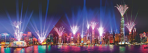 Pertunjukkan laser,lampu dan musik yang diikuti oleh 44 gedung di kedua sisi Victoria Harbour ini dinobatkan oleh Guinness World Records sebagai pertunjukkan musik dan lampu permanen terbesar di dunia. Dengan durasi pertunjukkan selama kurang lebih 15 menit, Symphony Of The Light ini digelar setiap jam 8 malam. Tapi pertunjukkan sewaktu-waktu dapat dibatalkan bila pemerintah mengeluarkan Typhoon Signal No. 3 keatas. Ada 3 tempat terbaik untuk menyaksikan pertunjukkan ini. Pertama, di Avenue Of Stars. Kedua, di waterfront promenade diluar Golden Bauhinia Square di Wanchai dan Ketiga, sambil naik Star Ferry menyeberangi Victoria Harbour. Pertunjukkan ini biasanya disertai oleh narasi yang menerangkan tahap-tahap pertunjukkan. Di hari Senin, Rabu dan Jum’at digunakan bahasa Inggris sebagai narasinya, sedangkan Mandarin digunakan setiap hari Selasa, Kamis dan Sabtu dan Cantonese setiap hari Minggu. Pada event-event tertentu seperti Natal dan Tahun Baru selain laser dan lampu juga ditambah dengan pertunjukkan kembang api.