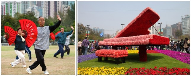 Pada saat saya keluyuran disini banyak sekali warga Hongkong yang berolahraga, ada yang jalan kaki, lari-lari tapi lebih banyak yang Tai Chi baik berkelompok atau sendiri-sendiri. Waktu yang tepat untuk mengunjungi taman ini adalah bulan Maret saat diadakan Hongkong Flower Show yang merubah Victoria Park menjadi taman sejuta bunga dan bulan September saat Mid Autumn Festival waktu diadakannya festival lampion di tempat ini.