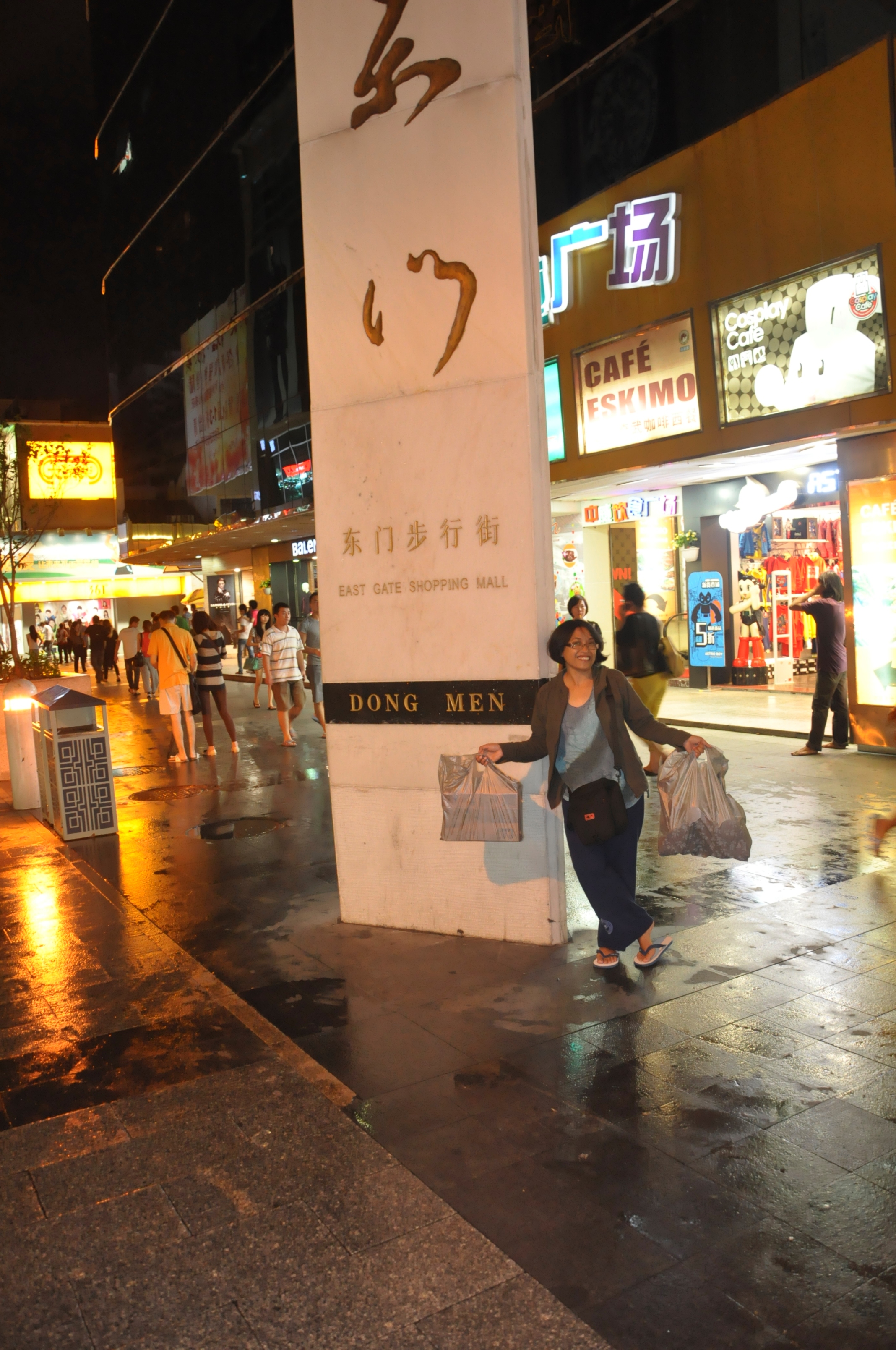 Batal pergi ke Splendid Cina, kami memutuskan kembali lagi ke hotel untuk sholat dan ganti baju yang basah kuyup (padahal sudah pakai jas hujan). Setelah istirahat dan makan sore di KFC, jam 4 sore kami melanjutkan perjalanan ke Dongmen Shopping Street.