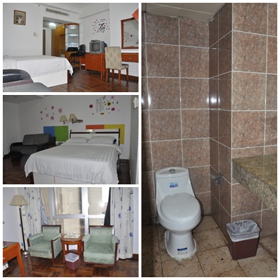 Bila kita cek di Agoda, banyak sekali pilihan hotel murah di Shenzhen. Di kota ini kami menginap di Shenzhen Huizhange Hotel. Dari stasiun Luohu jalan saja keluar kearah East Side, exit ke Jianshe Road. Begitu keluar akan langsung terlihat Hotel Shangrila Shenzhen (hiks..tidak mampu menginap disitu), Shenzhen Huizhange Hotel terletak di sebuh gedung persis dibelakang hotel Shangrila . Hotel ini kami dapat dari calo-calo yang banyak berkeliaran di depannya. Gedung tersebut mungkin semacam Chungking atau Mirador Mansion karena didalamnya terdiri dari banyak hotel. Harga kamar yang ditawarkan kepada kami Y150 permalam (sekitar Rp. 195.000, saya yakin masih bisa ditawar). Kamarnya ternyata cukup luas (2,5 kali ukuran kamar hostel di Hongkong) dengan double bed, sofa dan sepasang kursi-meja, bahkan ada meja riasnya juga.