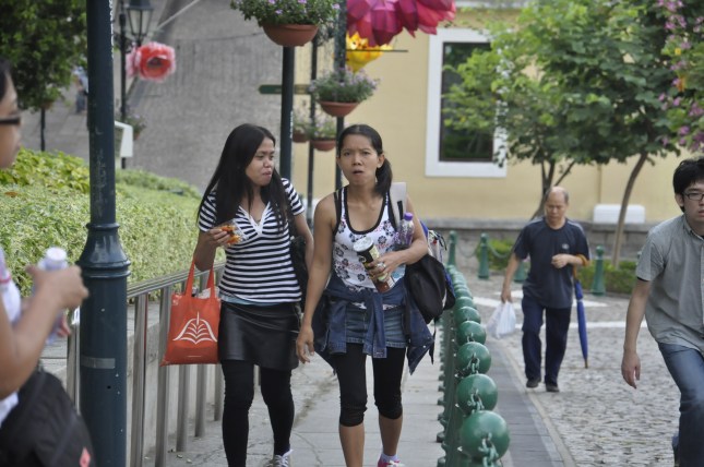 Dengan wajah Jawa dan dandanan yang tidak terlalu keren, saya selalu dikira TKW. Yah, tau sendirilah perlakuan petugas bandara kepada para TKW. Tidak di Juanda ataupun di LCCT mereka terkesan galak dan suka membentak-bentak. Malah waktu cek passpor di LCCT petugasnya meminta saya menunjukkan tiket pesawat pulang pergi plus tanda booking hotel. Keterlaluan sekali, untung semua konfirmasi tiket dan hotel selalu saya yang pegang. Jelas saya merasa terlecehkan karena suami yang diperiksa duluan sebelum saya malah nggak ditanyai apa-apa. Yeay, siapa juga yang mau tinggal di Malaysia :). Padahal bila dibandingkan dengan para TKW Indonesia yang tinggal di Hongkong atau Macau penampilan saya kalah keren. Bajunya bohhh seksi-seksi dan terkini. Seperti inilah penampilan TKW Indonesia yang saya temui di Ruins Of St Paul.