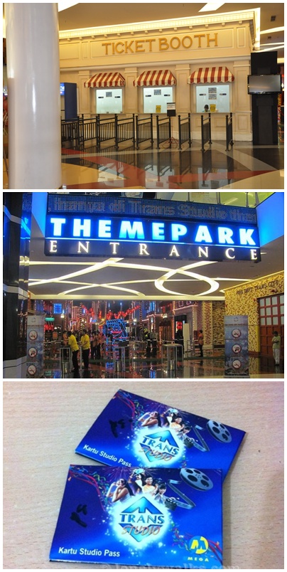 Anyway, kesan pertama yang mengecewakan ini tidak diikuti dengan kesan mengecewakan yang lain tentang TSM. Bis gratis yang kita tunggu datang dengan cepat dan hebatnya walaupun penumpang hanya berdua bis langsung berangkat. Theme Parknya sendiri juga bersih dan sangat terawat. Petugasnya ramah-ramah, harga makanan di dalam tidak terlalu mahal dan satu lagi musholanya bersih dan cukup luas. Jam buka TSM dari jam 10.00 – 21.00 (Hari Kerja) dan sampai jam 22.00 (Hari Sabtu-Minggu dan Hari Libur). Tiket masuknya cukup unik yaitu berupa kartu isi ulang bernama Studio Pass yang berfungsi sebagai alat pembayaran untuk segala macam transaksi dalam TSM (beli makanan, minuman dan souvenir). Tarif masuk berikut 15 wahana permainan (bermain sepuasnya) adalah Rp. 100.000, harga kartu Studio Pass Rp. 10.000 dan harga paket 6 wahana utama Rp. 50.000. Tapi saat itu kami cukup beruntung karena hanya dengan harga tiket Rp. 110.000 sudah mendapat 15 wahana permainan plus bonus 6 wahana utama :). Website resmi TSM bisa diakses disini.
