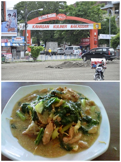 Selesai menikmati pisang epe, es palu butung dan sunset di pantai Losari, kami lanjut terus menjelajah Jln. Datu Museng. Jalan ini bisa dikatakan sebagai Kawasan Kuliner Makassar karena hampir di sepanjang jalannya banyak terdapat warung-warung yang menjual makanan khas Makassar. Dua rumah makan yang paling terkenal di jalan ini adalah Mie Titi dan RM. Lae-Lae yang terkenal dengan ikan bakarnya. Mie Titi adalah mie kering yang disiram dengan kuah kental berisi sayuran dan daging (kalau di Jawa hampir sama dengan Tamie Cap Jay). Harga porsi besarnya Rp.18.000 yang bisa dimakan untuk bertiga (bahkan berempat πŸ™‚ ).