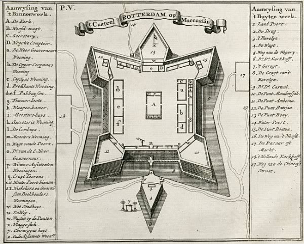 Begitu kalah perang, benteng ini akhirnya diserahkan kepada Belanda yang menjadikannya pusat penampungan rempah-rempah di Indonesia bagian timur. Namanya diganti dengan Fort Rotterdam sesuai dengan nama tempat kelahiran Cornelis Speelman yang saat itu menjabat sebagai Gurbernur Jenderal Hindia Belanda. Bangunan bentengnya bergaya arsitektur Eropa abad ke 16 yang masih terpelihara dengan baik. Bila ingin menjelajah benteng menggunakan pemandu tarifnya Rp. 50.000, bila tidak jelajahi saja sendiri ke lima sudutnya yang lazim disebut Bastion. Bastion-bastion ini bernama Bastion Bone terletak disebelah barat yang merupakan kepala penyu, Bastion Bacam,Β Bastion Butan,Β Bastion Mandrasyah dan Bastion Amboina. Jangan lupa ngobrol-ngobrol aja dengan bapak-bapak PNS yang berada di sekitar situ, mereka dengan senang hati akan bercerita tentang sejarah benteng (nah sama kan dengan pemandu πŸ™‚ ! ).