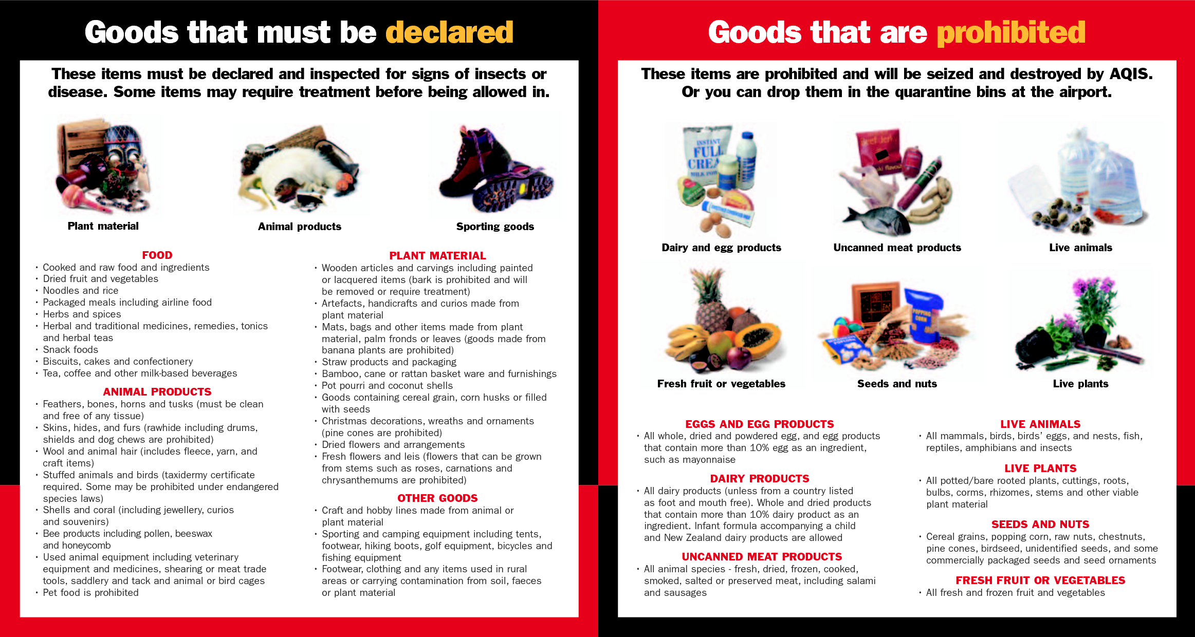 Sejak dahulu makanan, tanaman dan hewan dipercaya sebagai salah satu sumber dari penyebaran penyakit antar negara diantaranya penyakit foot and mouth disease. Dengan alasan itulah, pemerintah Australia memperketat masuknya makanan, tanaman, hewan dan produk-produk yang berkaitan. Jadi kalau kita membawa barang-barang diatas yang termasuk dalam daftar declare maka di airport kita harus menyatakan (declare) kepada petugas kalau kita membawa barang-barang tersebut. Selanjutnya petugas itulah yang memutuskan apakah barang itu boleh dibawa masuk atau berakhir di keranjang sampah. Barang-barang yang termasuk dalam daftar declare antara lain :