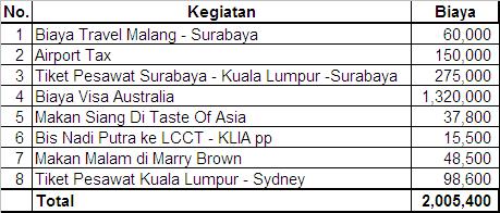 Biaya tiket pesawat KL-Sydney Rp 98,600 ribu atau Aud 98,600. ya?
