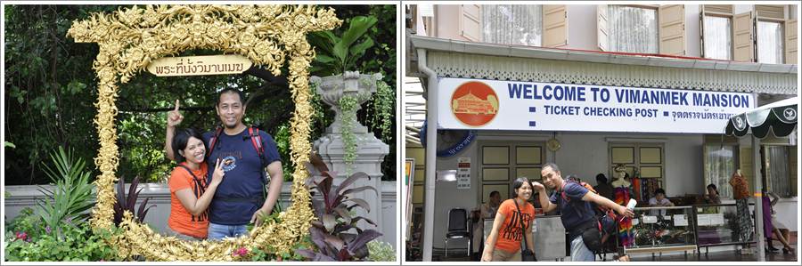 Bangunan ketiga yang saya kunjungi adalah Vimanmek Mansion Museum, terletak di belakang Abhisek Dusit Throne Hall gedung ini mudah dicari walaupun tidak ada petunjuknya karena kita bisa ikut arus turis-turis yang banyak berseliweran di tempat itu :). Sebelum masuk ke istana ini, di gerbang depan ada semacam pos penjagaan untuk pemeriksaan tiket dan persewaan sarung bagi pengunjung yang bajunya tidak sesuai. Bila ingin ikut free guide tour bisa juga mendaftar di tempat ini. Official free guide tournya diadakan setiap 30 menit sekali mulai jam 09.30 sampai tur terakhir jam 15.15. Dari pos penjagaan ini kita masih harus berjalan lagi ke gedung kecil disebelah istana untuk menitipkan tas dan kamera, sewa lokernya gratis tapi harus deposit. Keluar dari gedung ini, kita menuju ke lantai dasar istana untuk menitipkan sepatu. Jadi masuk istana harus tanpa tas dan sepatu dan penjagaannya memang super ketat karena sebelum masuk kita akan di body scanner seperti ketika masuk bandara. Semua handphone dan gadget yang tidak dimasukkan dalam tas harus ditinggal disini. Setelah melalu pemeriksaan ini barulah kita boleh mengunjungi 31 ruangan dari total 81 ruangan dalam istana itu.