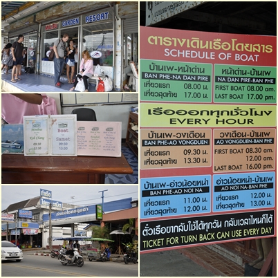 Jam 8 pagi tepat, sudah ada minivan yang nongkrong menjemput kita di depan Tune Hotel. Karena tidak sempat sarapan, kami membeli nasi bungkus dari penjual keliling yang naik sepeda untuk dimakan di van. Perjalanan ke Ban Phe, pelabuhan terdekat menuju Koh Samet memakan waktu 1 jam 15 menit. Disitu, kita turun di di kantor travel agennya dan diajak jalan kaki menuju Chokkrisda Pier untuk naik kapal menuju Pelabuhan Ao Wong Duan di Koh Samet. Ban Phe Pier sendiri memiliki 5 sub pier yang masing-masing memiliki jurusan dan fasilitas ferry yang berbeda. Jadi kalau tidak ikut tur, berhati-hatilah saat naik kapal di tempat ini.
