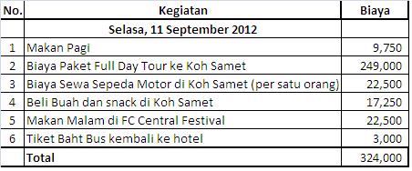 Sayangnya walaupun sudah dimasukkan dalam kawasan National Park, pembangunan hotel dan bungalow masih saja terus berlangsung yang tentu saja berakibat pada sumber daya pulaunya. Banyak hotel dan bungalow yang membuang air kotornya kelaut dan banyak juga yang landscapenya dibangun tidak sesuai dengan kontur tanah dan pulau. Tapi bagaimanapun juga, keindahan laut dan pantainya tetap menyejukkan jiwa dan merupakan salah satu pilihan destinasi bila pergi ke Pattaya. Untuk paket tour satu hari ke pulau ini saya dikenai biaya 830 B atau sekitar Rp. 249.000. Di dalamnya sudah termasuk transportasi pulang pergi dari hotel ke Koh Samet, biaya masuk pulau dan makan siang. Biaya sewa kendaraan untuk mengeksplore pulau tidak termasuk dalam paket ini. Jadi pada dasarnya mereka hanya mengantar dan memberi makan siang. Perjalanan menuju Koh Samet memakan waktu kurang lebih 3 jam (pulang pergi berarti 6 jam) dengan kesempatan menjelajah pulau hanya 4 jam. Jadi yah, kita memang tua di jalan :).