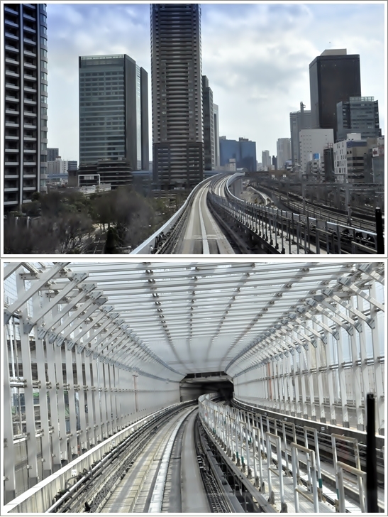 Kereta Yurikamome ini menyeberang melewati Rainbow Bridge yang menghubungkan Odaiba dengan Tokyo. Jembatan bertingkat dua ini merupakan simbol Odaiba Island dan terlihat sangat indah terutama pada malam hari saat lampu-lampu meneranginya. Jembatan ini menopang jalan kendaraan bermotor, rel kereta Yurikamome dan jalur pejalan kaki serta menawarkan pemandangan yang indah sepanjang pelabuhan dan Tokyo waterfront. Posisi paling bagus adalah duduk atau berdiri di kereta paling depan karena dari situlah pemandangan jalannya terlihat paling spektakuler. Kalau pernah melihat film Spiderman 2 ala Toby Maguire dimana dia melawan Dr. Octopus untuk menyelamatkan kereta di New York yang melaju kencang. Pemandangannya yah hampir-hampir mirip adegan itu. Kereta melaju kencang dengan gedung-gedung tinggi seakan berlari di kanan kirinya.