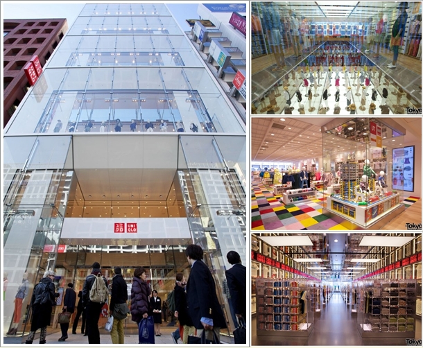 Desain gedung ini juga terlihat unik dengan banyak panel kaca serta boneka manekin yang bisa berputar. Kabarnya untuk menarik turis, toko ini juga menyediakan 15 pembicara dengan 6 bahasa yang berbeda (Jepang, Inggris, Perancis, Spanyol, China dan Korea). Di Uniqlo ini harga barang-barang obralnya memang relatif murah. Barang-barang diskon tersebut ada yang diletakkan secara mencolok di rak-rak diskon tapi ada juga yang tersembunyi di bagian belakang rak. Untuk oleh-oleh, di toko ini saya mendapat satu jaket windbreaker untuk anak-anak yang bisa dilipat sampai sekepalan tangan dengan harga yang lumayan murah. Jalan-jalan di seputaran Ginza ini, kami juga mampir ke Tokyo Station untuk mengagumi keindahan gedungnya dari luar. Tokyo Station merupakan stasiun tersibuk di Jepang yang menjadi lintasan kereta-kereta JR East, JR Central dan Tokyo Metro sekaligus menjadi terminal bagi bis-bis yang melayani rute daerah Kanto dan sekitarnya.