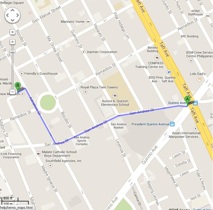 Menurut saya cari hotel di Manila itu susah karena mereka tidak memiliki titik transportasi terpusat seperti KL Sentral di Kuala Lumpur atau Central Station di Sydney. Dalam kriteria saya hotel ideal itu, murah, bersih dan dekat dengan stasiun kereta atau halte bis. Nah itu yang susah didapat di Manila. Dari berbagai pertimbangan akhirnya pilihan saya jatuh pada Malate Pensionne Hotel yang berjarak 750 meter dari stasiun LRT-1 Quirino. Jarak segitu sudah yang paling dekat dengan stasiun. Tapi walaupun jauh, hotel ini gampang dicari. Dengan berbekal peta hasil cetakan dari Google Map, saya sukses menemukannya tanpa nyasar 🙂 .