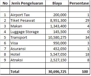 Perjalanan selama 19 hari ini kami tempuh mulai tanggal 4 s/d 22 Mei 2014 dengan menghabiskan dana Rp. 30.696.725 per orang (Kurs saat itu : 1 Euro = Rp. 16.300, 1 SGD (Dollar Singapura) = Rp. 9.300, 1 USD = Rp. 13.500, 1 CHF (Swiss Franc) = Rp. 13.300) dengan rincian sebagai berikut :