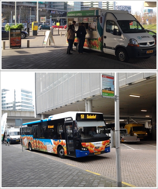 Mini van penjual tiket (atas) dan bis 858 ke Keukenhoff (bawah)