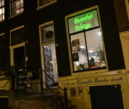 Akhirnya walking tour kami berakhir di Cannabis College yang sayangnya juga tutup. Tempat ini semacam pusat informasi gratis tentang seluk beluk ganja dan bagaimana menggunakannya secara aman. Tidak dapat dipungkiri bahwa pada dasarnya sudah ribuan tahun manusia menggunakan ganja baik sebagai pengobatan, relaksasi ataupun industrial (batangnya bisa diolah menjadi serat fiber sebagai bahan dasar jaring atau kain). Dari beberapa website yang saya baca di dalam Cannabis College ini juga terdapat taman ganja selain itu mereka juga bisa merekomendasikan beberapa nama Coffe Shop yang dilegalkan untuk menjual ganja.