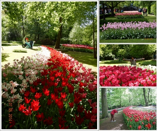 Usai mengikuti tur, kami melanjutkan jalan-jalan sambil mencari pojok-pojok sepi yang bisa digunakan untuk sholat. Selesai sholat kami berjalan ke Food Court untuk mencari makanan murah dan halal. Sebelumnya saya sudah baca di beberapa ulasan kalau harga makanan di dalam Keukenhoff mahal-mahal dan disarankan untuk membawa makanan dari luar saja. Tapi saya pikir tidak ada salahnya untuk mencoba siapa tahu ada satu kios makanan murah yang nyemil disitu. Ternyata benar juga, jangankan yang halal yang murah aja hampir nggak ada 🙂 . Yah, akhirnya perut dipaksa lagi makan bekal yang dibawa dari rumah. Sebetulnya waktu beli tiket sempat terpikir juga untuk pergi di bulan April sekalian menyaksikan Bulbflower Parade semacam pawai kendaraan hias yang didominasi oleh Tulip. Sayangnya bulan April harga tiket sedang mahal-mahalnya karena pembukaan musim semi sehingga baru dapat tiket murah di bulan Mei. Informasi mengenai Bulbflower Parade bisa dilihat disini sedangkan website resmi Keukenhoff bisa dilihat disini . Di website-website tersebut kita bisa mengecek waktu pembukaan Keukenhoff dan penyelenggraan Bulbflower Parade. Tapi saya akui bulan April memang waktu terbaik untuk mengunjungi Keukenhoff karena saat saya kesana di bulan Mei sudah banyak tulip yang berakhir masa bunganya. Bahkan ada beberapa tempat yang kosong karena bunganya sudah dicabuti semua.