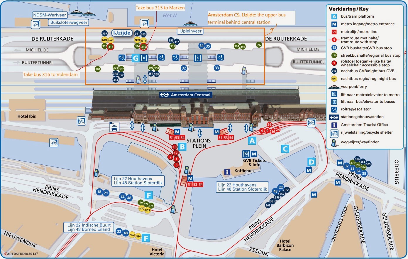 Setelah selesai urusan check out dan menitipkan backpack, mulailah kami berjalan menuju stasiun Amsterdam Centraal untuk naik bis menjelajah dua kota dalam itinerary saya yaitu Volendam dan Marken.