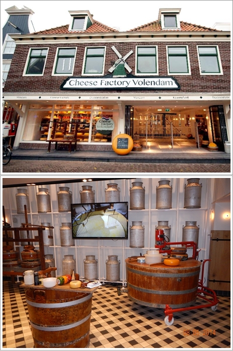 Selain sebagai studio foto, De Boer juga merangkap sebagai toko souvenir di lantai bawah. Souvenir yang dijual bermacam-macam mulai dari gantungan kunci, magnet kulkas sampai baju tradisional untuk anak kecil. Untuk harga saya tidak sempat membandingkan, tapi dilihat sepintas tampaknya lebih murah daripada harga-harga souvenir di Damraak. Dari De Boer kami mengunjungi Cheese Factory Volendam. Ini merupakan toko keju ketiga yang kami kunjungi selama di Belanda tapi tetap tidak bosan melihat demostrasi dan cheese tastingnya. Ada 4 hal yang bisa kita lakukan disini. Yang pertama adalah mengunjungi Cheese Museum yang terletak di lantai bawah (basement). Dalam museum akan ditunjukkan berbagai peralatan pembuatan keju, bahan dan komposisi yang digunakan serta proses pembuatan keju secara tradisional. Setelah tahu sejarahnya, kita bisa mengikuti kegiatan kedua yaitu Demonstrasi dengan menyaksikan proses pembuatan keju secara modern. Demo secara langsung ini diperagakan secara jenaka oleh host-nya dan diakhir acara demo seperti biasa diadakan salah satu kegiatan favorit saya yaitu Cheese Tasting. Sebelum mencicipi, kita akan dibekali sedikit pengetahuan bagaimana cara membedakan jenis-jenis keju berdasarkan struktur dan baunya setelah itu barulah acara mencicipi dimulai. Yang menjadi primadona disini adalah Volendam Cheese. Nah kalau tertarik ingin membeli keju-keju tersebut bisa langsung membeli di toko yang terletak di lantai 2.