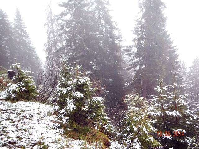 Naik terus melewati terowongan, salju mulai turun agak lebat sehingga dahan-dahan pohon mulai tertutup. Pak masinis menyuruh kami menutup jendela karena hawa mulai terasa dingin. Semakin naik dan naik akhirnya tibalah kami di lereng gunung yang putih semua tertutup salju. Duh orang-orang di kereta langsung pada ber WOW dan buru-buru mengeluarkan kamera untuk berfoto. Suasana jadi heboh. Saya sama sekali tidak mengira kalau saat itu puncak Pilatus sedang bersalju karena suasana di kaki gunung terang benderang tanpa salju setitikpun. Jadi judulnya mendadak salju di Pilatus nih 🙂 .