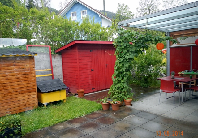 Di halaman belakang rumahnya ada kandang kelinci yang rapi bikinan sendiri. Di Swiss kalau mau mengundang tukang untuk bikin kandang, ongkosnya akan selangit. Kalau pakai tukang biayanya bisa CHF 6000 padahal kalau bikin sendiri habisnya hanya CHF 700. Jadi akhirnya mau tidak mau harus mandiri dan bikin sendiri. Nah itu bedanya dengan tinggal di Indonesia. Kalau di Indonesia apa-apa gampang dan murah, bikin orang jadi malas dan kurang mandiri. Yah, kalau saya sih terus terang kalau bikin kandang kelinci seperti itu tinggal panggil tukang atau beli di pasar 🙂 (ketahuan banget males nya). Jadi salah satu keuntungan tinggal di negara mahal adalah kamu akan belajar menjadi lebih mandiri. Bila perlu pekerjaan-pekerjaan teknis seperti  mengecat, memasang wallpaper atau membuat meja juga harus dilakukan sendiri karena semuanya serba mahal dan berat di ongkos kalau harus memanggil tukang profesional.