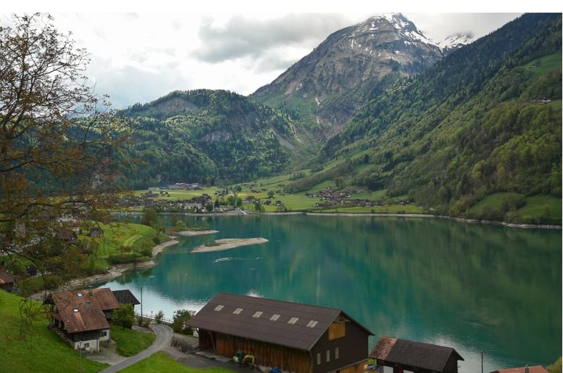 Jauh melewati danau Lucerne, kita akan melewati dua danau yang lebih kecil yaitu Sarnersee dan Lungernsee, sebelum kereta mulai memanjat melewati BrĂĽnig Pass. Pass ini memiliki ketinggian kurang lebih 1008 meter, yang tidak tinggi kalau menurut standar Swiss :). Saat mendaki, kita meninggalkan dua danau kecil itu dikejauhan sehingga pemandangan berganti menjadi pegunungan. Setelah mendaki, kereta akan turun sepanjang 413 meter menuju Meiringen yang berada di ketinggian 595 meter di dasar lembah. Disini jalur keretanya berubah menjadi jalur kereta Cogwheel Train. Sayangnya saya bukan fotografer profesional dan karena jendelanya tidak terbuka jadi memotret disini memang memiliki banyak tantangan. Ini beberapa foto dari Anda Galffy di websitenya travelnotesandbeyond.com yang bisa mewakili pemandangan yang saya lihat saat itu.