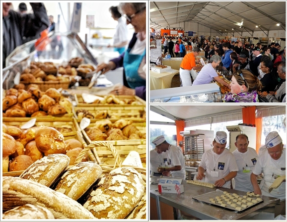 Kebetulan di alun-alun depan gereja sedang berlangsung even Paris Bread Festivals (Fete Du Pain) yang diadakan setiap tanggal 16 Mei. Even ini biasanya berlangsung selama seminggu untuk menghormati Saint Honoré’s – patron saint untuk para bakers. Festivalnya sendiri diadakan di sebuah tenda raksasa yang dipenuhi dengan para bakers yang sibuk membuat roti dan langsung menjualnya. Jadi roti yang dibuat benar-benar segar dan fresh from the oven. Dapat dibayangkan betapa harumnya tenda itu karena dipenuhi aroma beraneka macam roti yang baru dipanggang. Kebanyakan yang dijual disitu adalah roti-roti tradisional Perancis seperti Baquette, Brioches dan Croissant. Selain kue juga diadakan Cheese Contest yang menyajikan beraneka ragam jenis keju sebagai teman pendamping makan roti. Menariknya lagi kita bisa melihat para bakers tersebut beraksi membuat roti-roti yang lezat tersebut.  Akhirnya tidak tahan dengan aroma yang menggugah selera saya membeli satu batang roti keras atau Baquette. Berbeda dengan baquette yang sudah dingin, baquette hangat yang baru keluar dari oven ternyata tidak terlalu keras tetapi renyah, hangat dan empuk. Hmm, padahal yang kita beli hanya Baquette tawar tapi rasa dan baunya begitu tak tertahankan 🙂 .