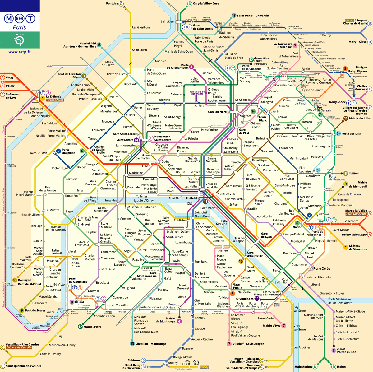 Pertama kali mengamati peta metro di Paris, mata rasanya langsung buram. Sebagai salah satu sistim metro tertua (jalur metro ini mulai beroperasi pada tahun 1900) jalurnya sudah sangat berkembang meliputi 300 stasiun yang menghubungkan 300 km jalur kereta di Central Paris dan Ile de France. Ada dua jenis kereta yang melayani kota ini yaitu Metro dan RER. Paris Metropolitan Tramway (Metro) memiliki 16 jalur yang biasanya ditunjukkan dengan angka dan hanya melayani area Central Paris saja. Saudaranya Regional Express Network (RER) memiliki 5 jalur yang diidentifikasikan dengan huruf dan melayani beberapa bagian Central Paris dan daerah Ile de France. Tapi kebanyakan Metro dan RER menempati stasiun yang sama jadi kalau pindah jalur tidak perlu keluar dari stasiun.