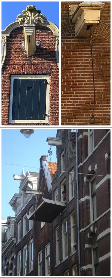 Perhatian saya sedikit teralihkan ketika terdengar suara gedebuk keras barang-barang dijatuhkan dari tingkat atas rumah sebelah. Rupanya si penghuni sedang mengadakan pembersihan besar-besaran. Cara membersihkannya juga unik. Cukup menaruh gerobak sampah besar di bawah jendela dan mereka tinggal membuang barang-barang yang tidak dikehendaki melaluinya. Dengan begitu mereka tidak perlu naik turun tangga yang sempit untuk membuang sampah-sampah itu. Praktis juga. Saat akan memasukkan barang-barang berat ke dalam rumah, mereka mengikatnya dengan tali dan mengereknya masuk lewat jendela. Tidak heran banyak rumah-rumah kuno di Amsterdam yang memiliki kerekan di atapnya. Jadi kerekan disini memang ada fungsinya dan bukan sekedar hiasan saja.